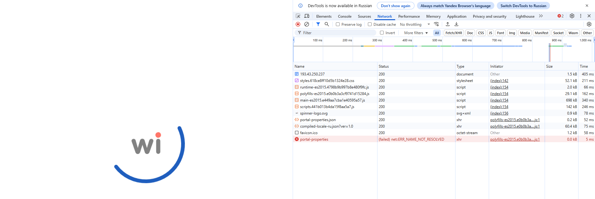 Частой проблемой, с которой сталкивается пользователя - это недоступность портала системы wiSLA. Проблема проявляется в виде вечно грузящегося спиннера логотипа системы