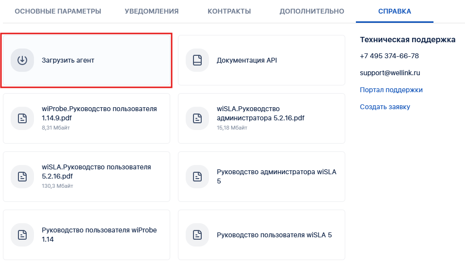 В рамках сквозного заведения инфраструктуры в wiSLA Cloud была добавлена возможность скачать программный агент с портала. Сразу после регистрации и авторизации пользователя на портале wiSLA Cloud он может скачать программный агент: