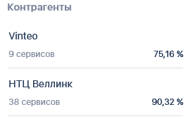 Заголовок вкладки содержит название контрагента и общий агрегированный показатель готовности по сервисам контрагента за прошлый месяц (последние 30 дней).