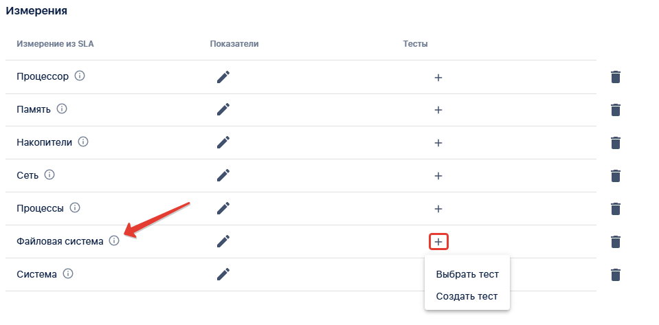 - Добавить тест к профилю измерения, в который был включен новый показатель, в настройка "создания сервиса" для его сбора.