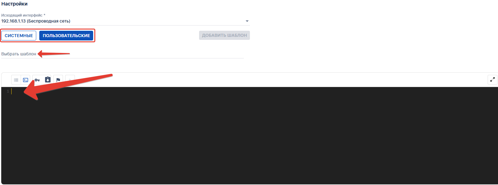 - Выбрать шаблон из системных или пользовательских. Или написать свой скрипт.