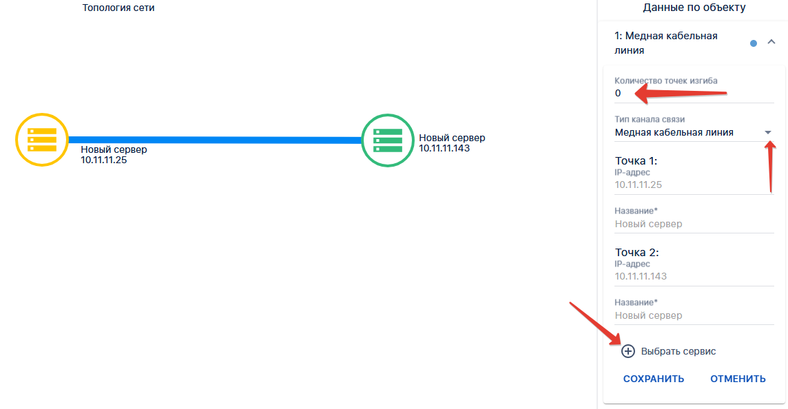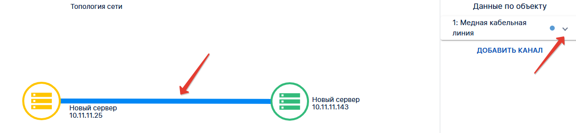 Для настройки отображения линии каналов связи, требуется между протянуть между двумя элементами топологии линию: