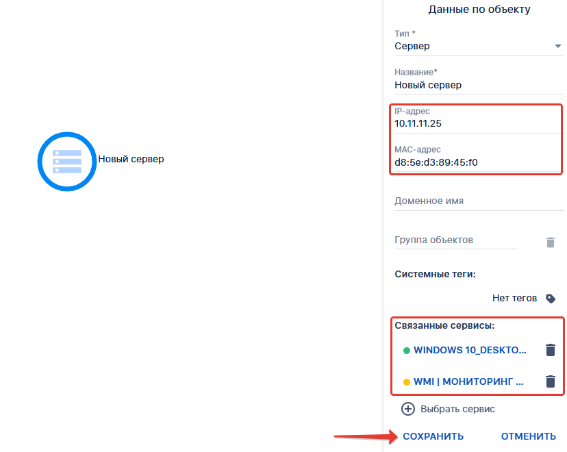 - Выбираем сервисы и жмем "ПРИМЕНИТЬ". Далее в меню "Данные по объекту" жмем "СОХРАНИТЬ"