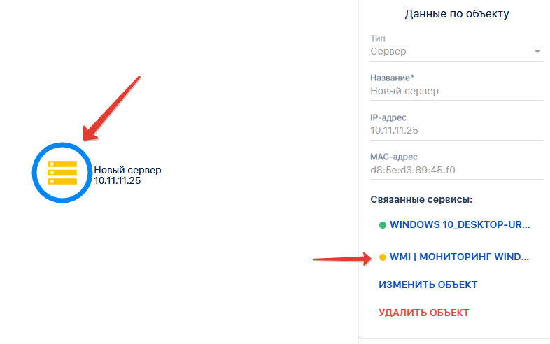 Добавление элементов и привязка результатов мониторинга