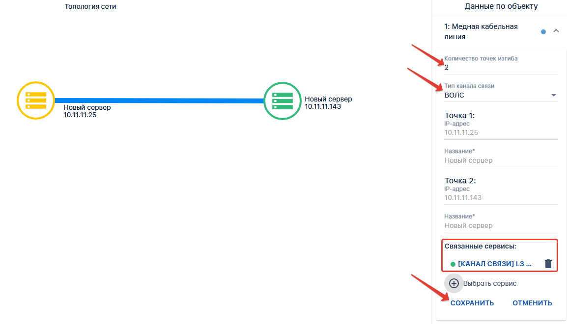- Указать тип канала: ВОЛС, DWDM, РРЛ, Медный кабель