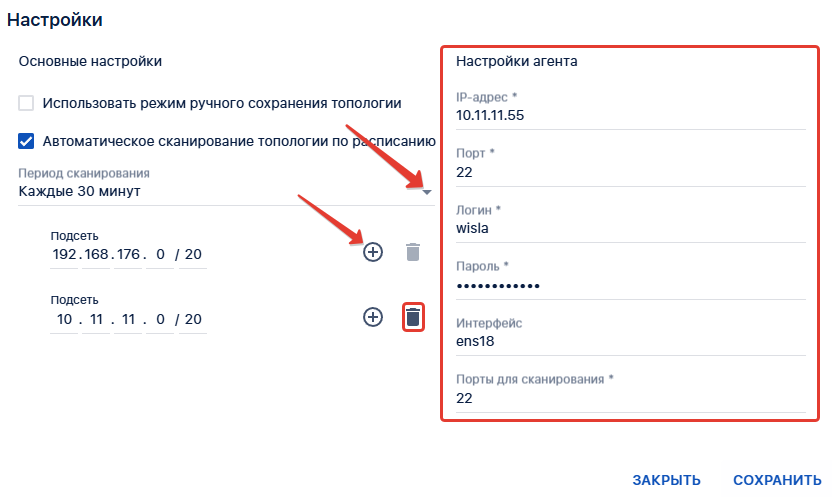 Настройка агента сканирования подсетей