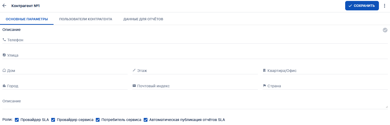 Контрагент — это ваша корпоративная рабочая область, выступающая в роли Владельца. За этой сущностью закреплены конкретные аккаунты вашей команды и объекты мониторинга. Она фундаментально разграничивает доступ, обеспечивая, чтобы каждая группа работала в рамках своего персонального пространства в системе. Контрагенту можно задать роли, которые будут учитываться при формировании отчётов SLA.